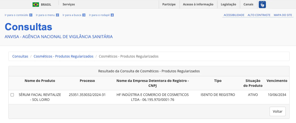 Todos os nossos cosméticos são regularizados e seguros, com registros ativos na Anvisa.
